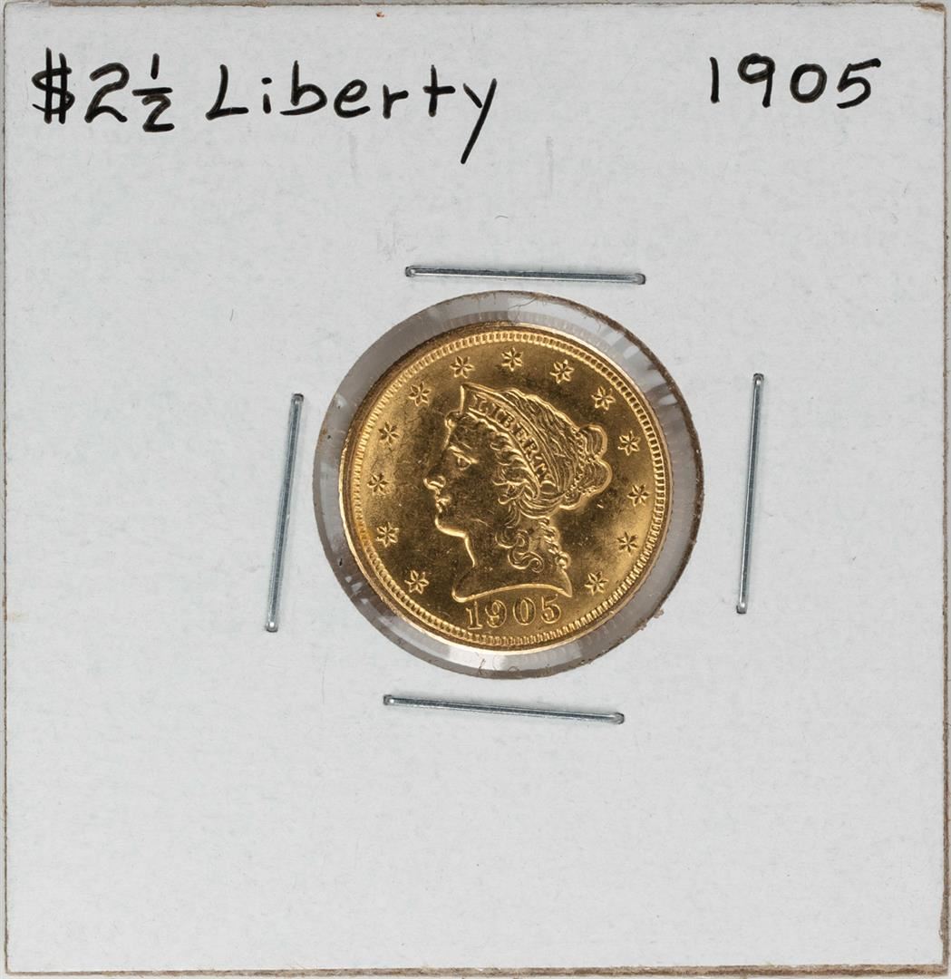 One 1905 $2 1/2 Liberty Head Quarter Eagle Gold Coin.