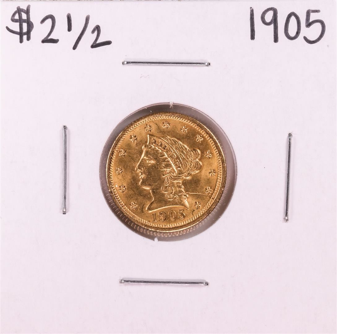One 1905 $2 1/2 Liberty Head Quarter Eagle Gold Coin.