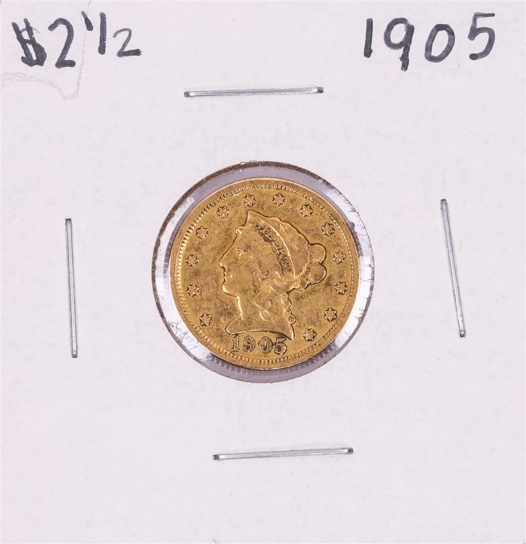 One 1905 $2 1/2 Liberty Head Quarter Eagle Gold Coin.