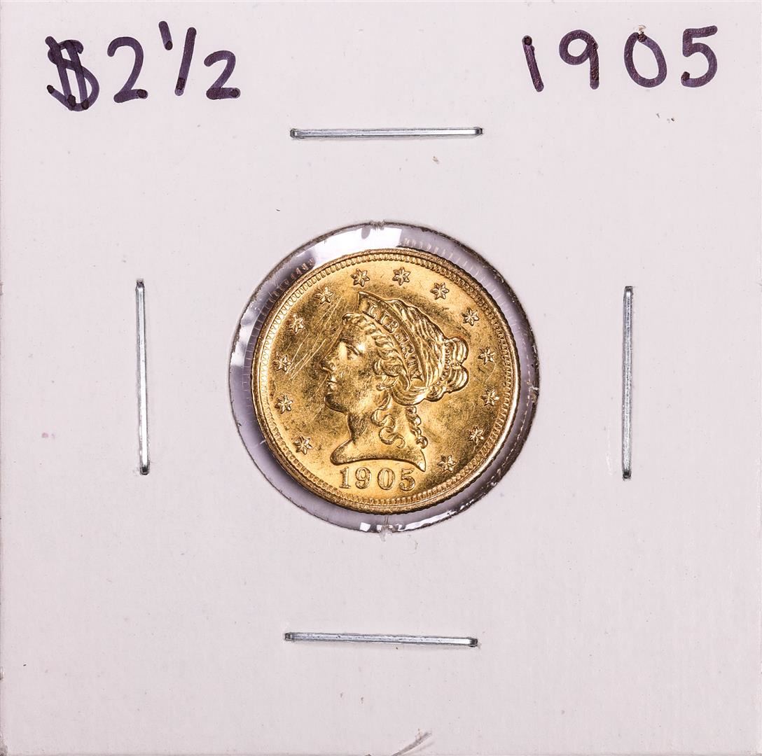One 1905 $2 1/2 Liberty Head Quarter Eagle Gold Coin.