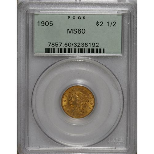 1905 $2 1/2 MS60 PCGS. PCGS Population (96/4300).