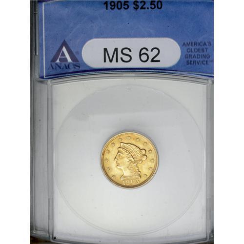1905 $2 1/2 MS62 ANACS. A nice-looking, boldly struck 1905