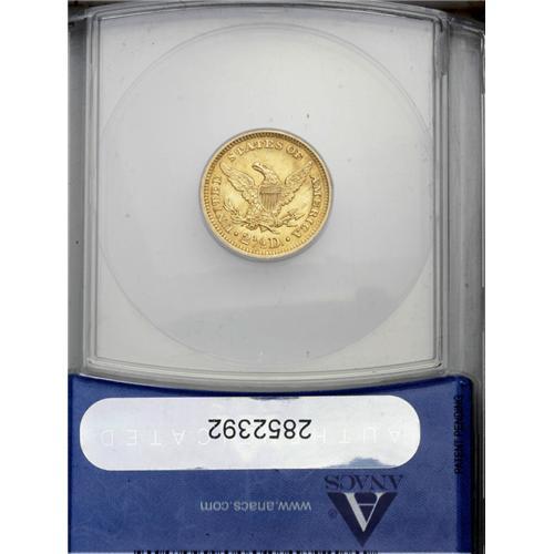 <B>1905<$2 1/2> MS62 ANACS.</B></I> A nice-looking, boldly struck khaki-gold piece, seemingly conservatively graded, as there appear to be few mentionable distractions save for a couple of light pinscratches on Liberty's cheek.