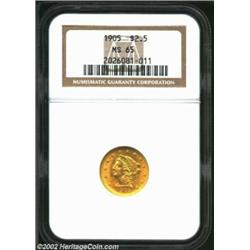 1905 $2 1/2 MS65 NGC. A razor-sharp Gem with attractive honey-gold color and potent cartwheel luster