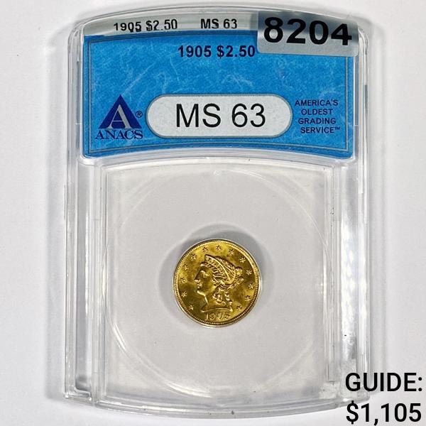 1905 $2.50 Gold Quarter Eagle ANACS - MS63 DMPL
