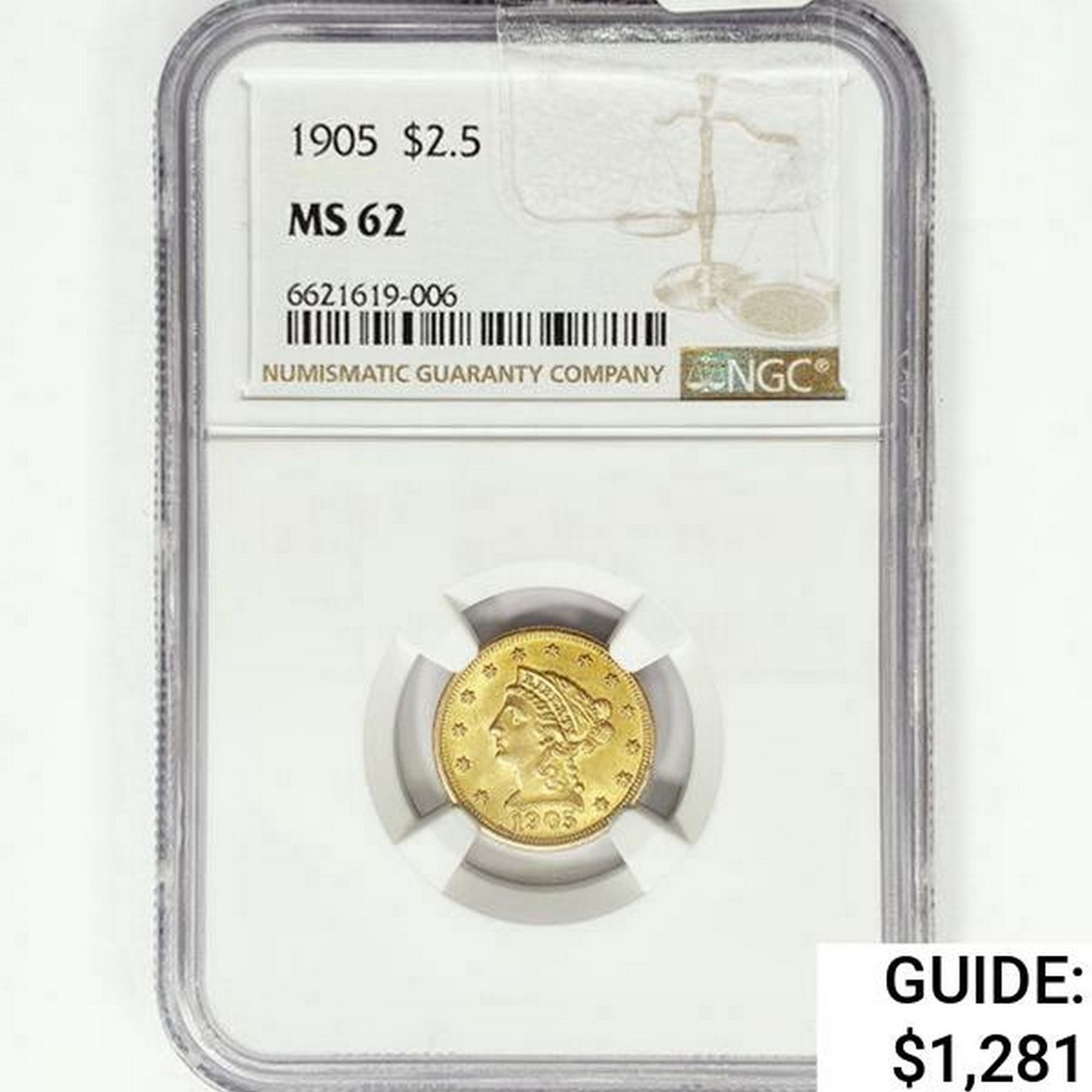 1905 $2.50 Gold Quarter Eagle NGC MS62