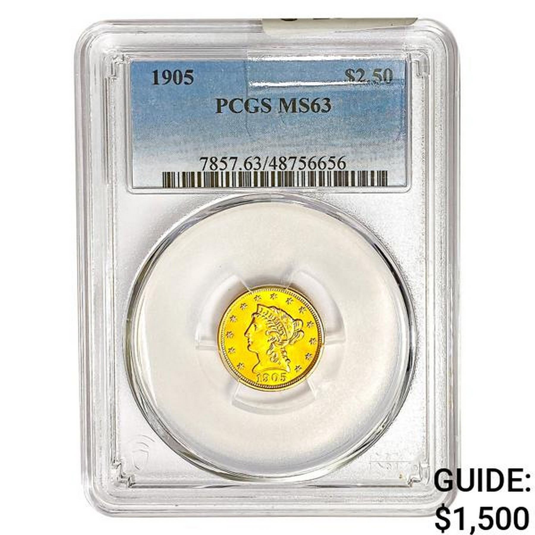 1905 $2.50 Gold Quarter Eagle PCGS MS63