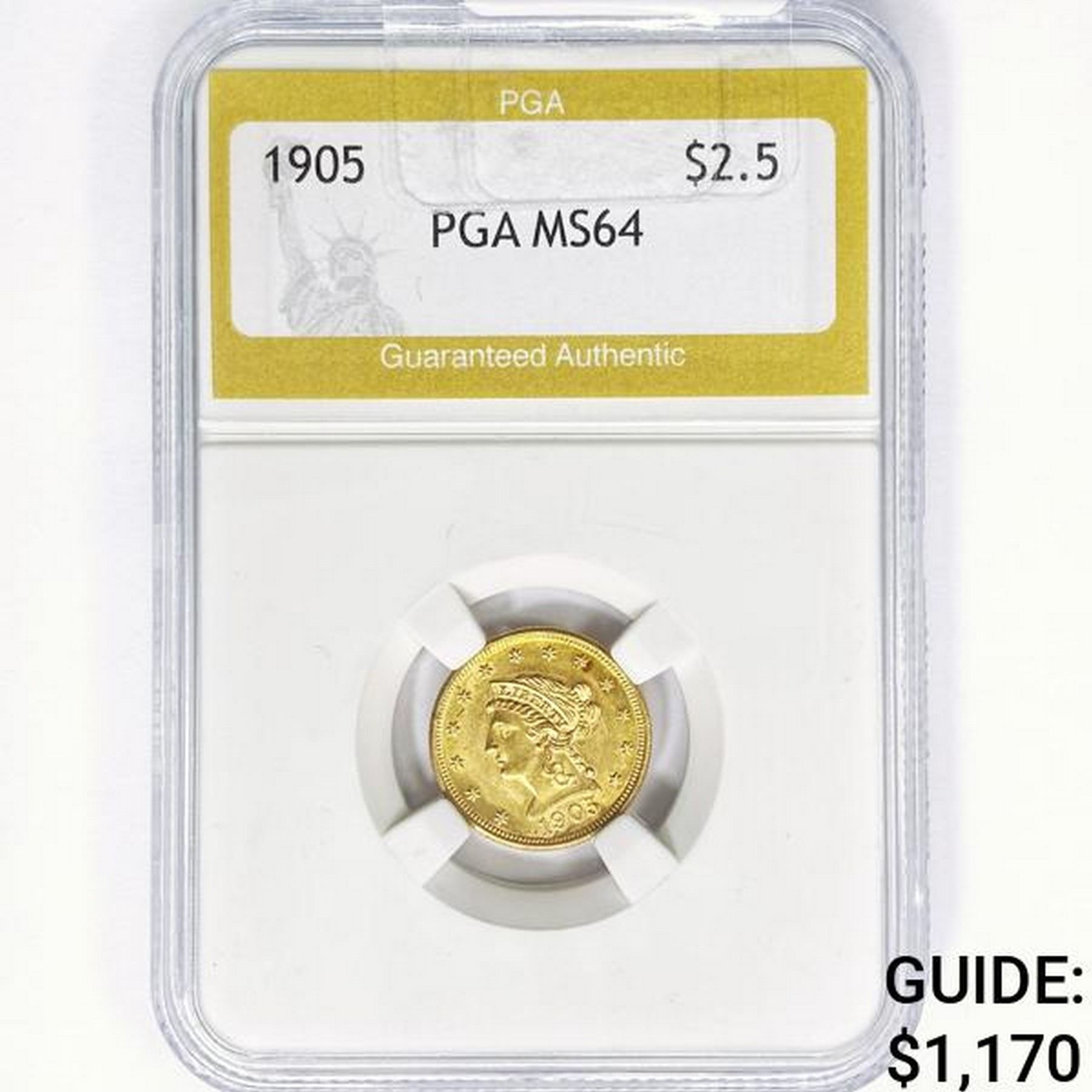1905 $2.50 Gold Quarter Eagle PGA MS64