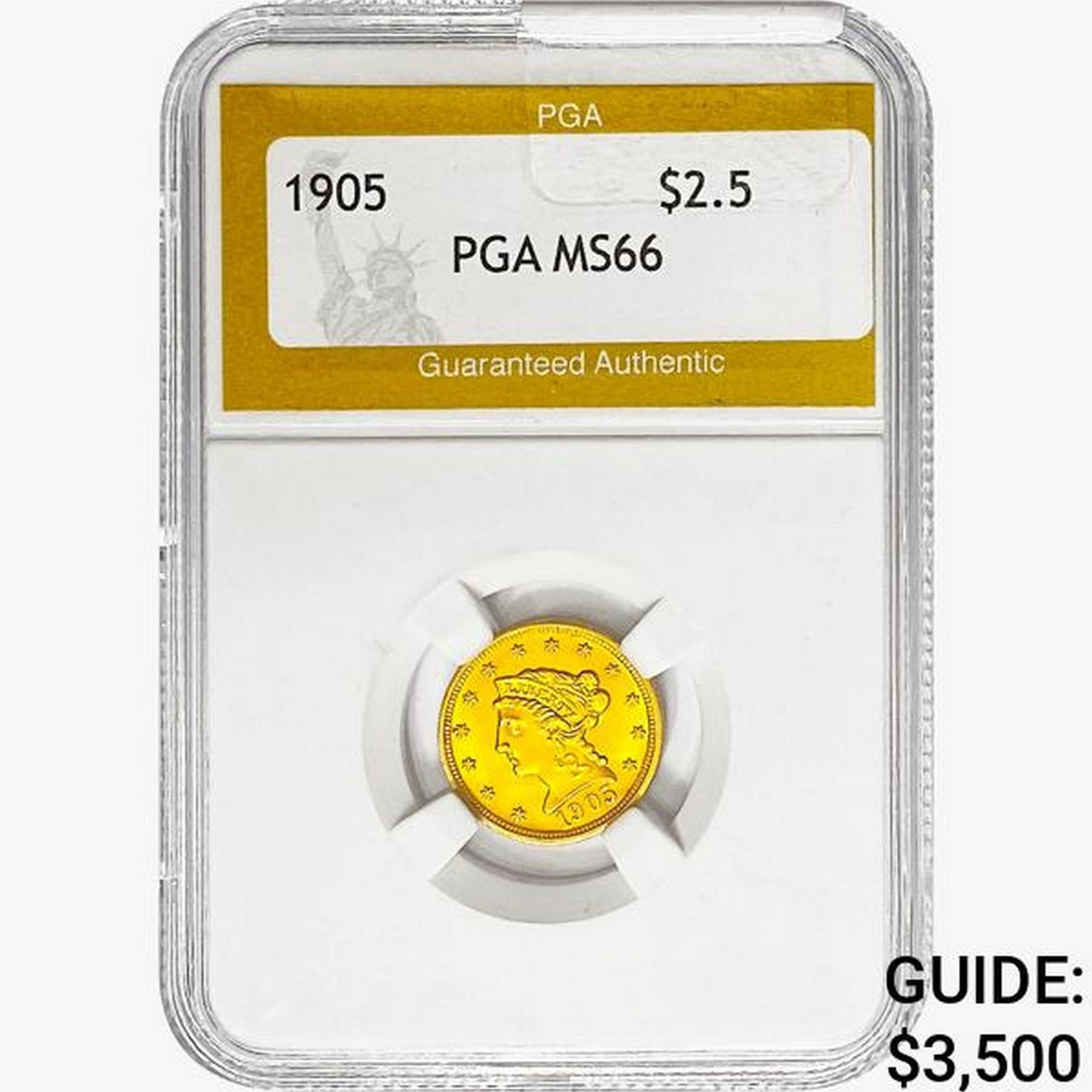 1905 $2.50 Gold Quarter Eagle PGA MS66