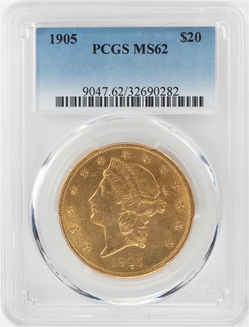 One 1905 $20 Liberty Head Double Eagle Gold Coin PCGS MS62. PCGS Graded.