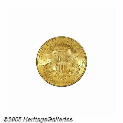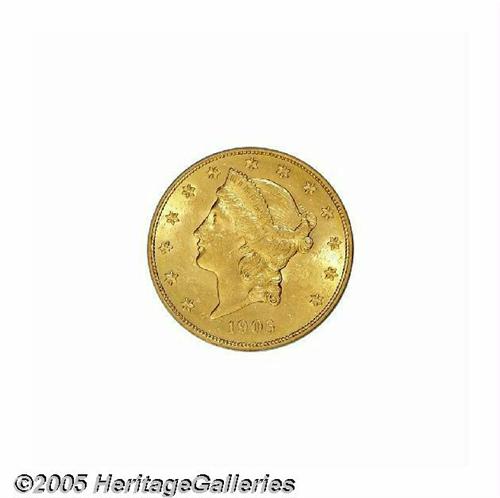 <B>1905<$20> MS62 PCGS.</B></I> Brilliant and frosty, with just a hint of olive iridescence on the reverse. Most design features are sharp save for a touch of softness on the eagle's head. A shallow planchet flaw is noted on Liberty's neck. A scarce and desirable issue. Numismatic researcher and author David Akers has written: "The 1905 is the rarest 20th-century Liberty Head double eagle."