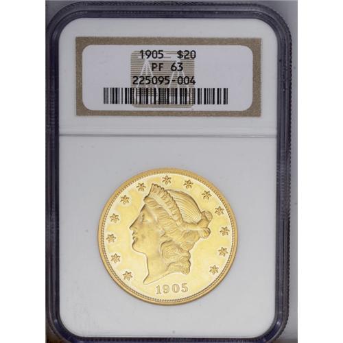 1905 $20 PR63 NGC. When thinking of 1905 twenties, not