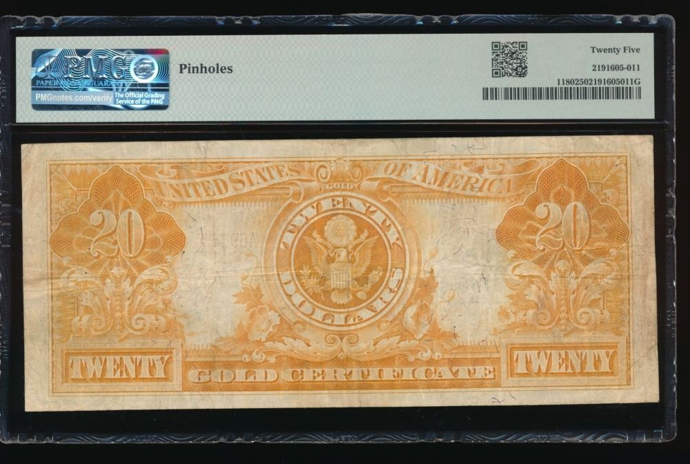 One 1905 $20 Technicolor Gold Certificate PMG 25.