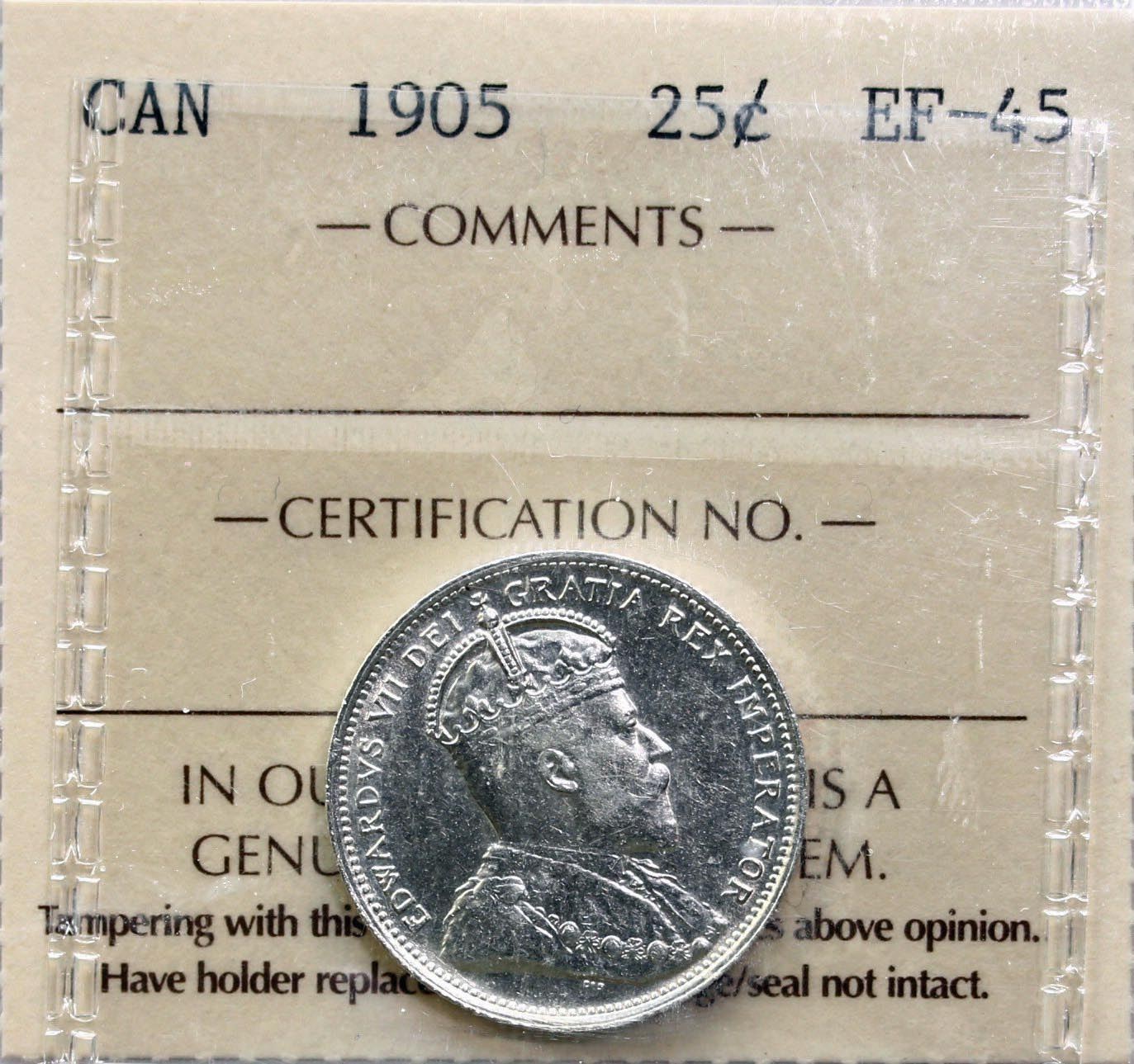 1905 25¢ ICCS Choice Extra Fine-45. Bright white key example.