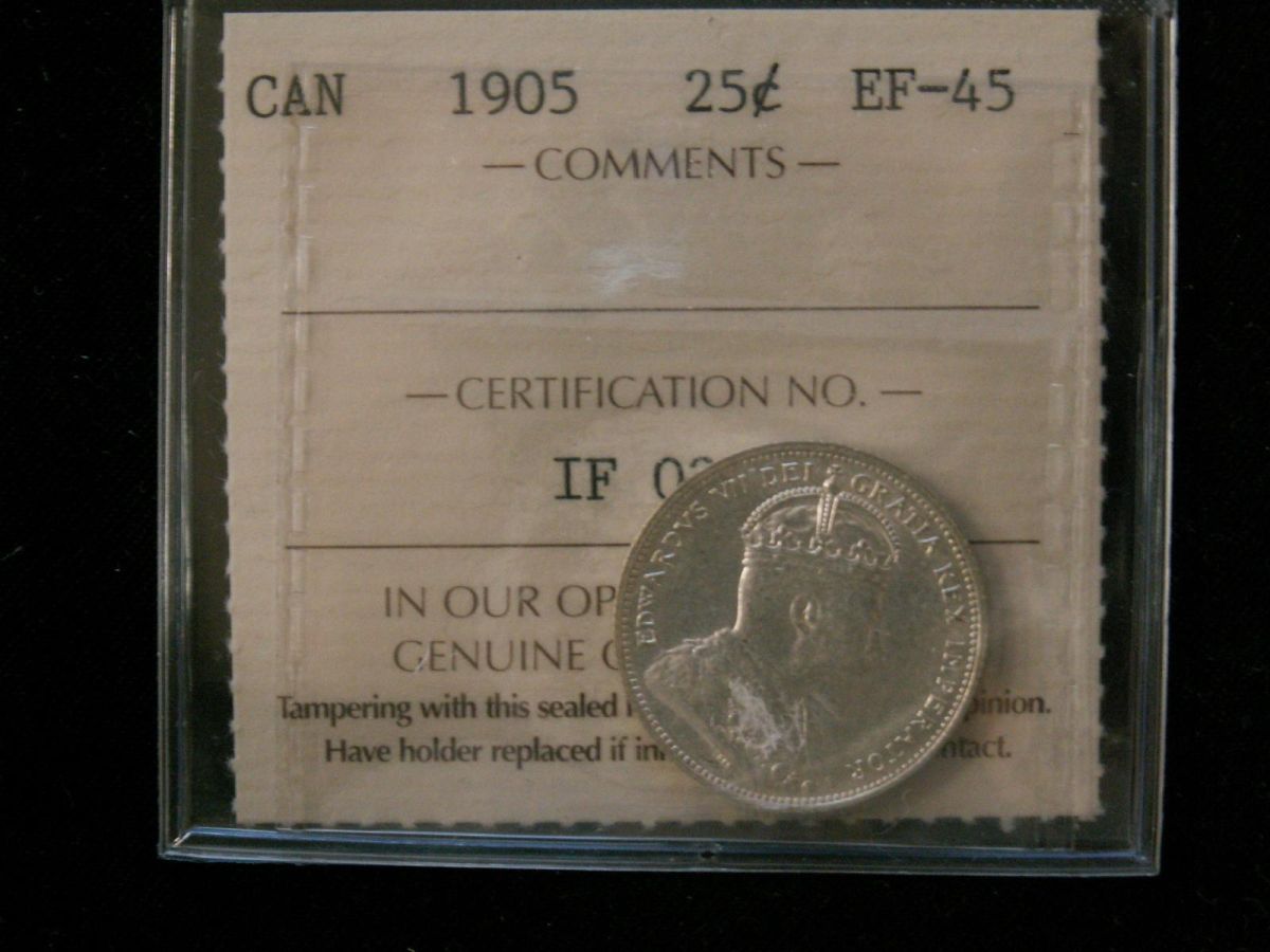 1905 25¢ ICCS EF45. Tough issue with some light lustre. White in colour.