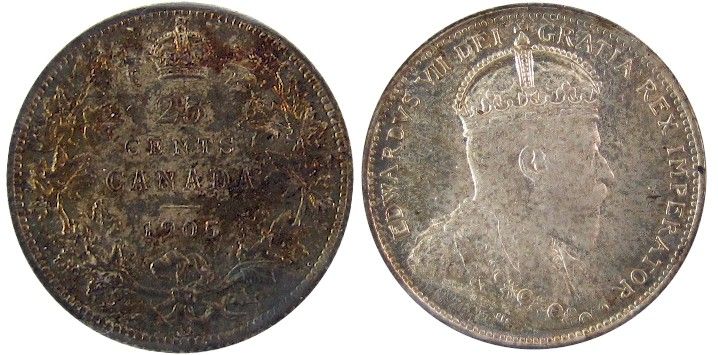 1905 25¢ ICCS MS63. Very rare date in choice uncirculated. Seldom offered.