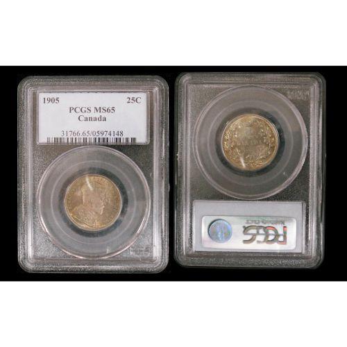 1905 25¢ PCGS MS65. Superbly toned, RARE DATE