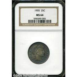 <B>1905 25C MS64 NGC.</B></I> Lustrous surfaces are enriched by cobalt-blue and mauve-gray patina. Sharply struck, and well preserved, with no significant marks. Population: 34 in 64, 14 finer (2/05).