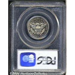 <B>1905<25C> PR65 Cameo PCGS.</B></I> Splashes of subtle aqua blue and lavender occupy the margins, leaving the centers nearly tone free. The design elements are strongly impressed throughout, and the surfaces appear to be devoid of significant marks. A few wispy slide marks, especially on the obverse, are mentioned for accuracy. This is an overall impressive Barber quarter. <BR><BR><B>Important notice:</B> Heritage usually auctions material at the rate of 200-250 lots per hour. On some occasions eBay Live bid software or the Internet may not be able to keep up with the pace of the auction. We recommend placing a realistic absentee bid now as insurance to avoid disappointment. Occasionally the auctioneer may eliminate or reject an eBay Live bid, and the auctioneer may also reopen a lot after the close of the eBay live bidding (usually because we missed an audience bid), and may reject your bid even if it shows you as the winning bidder. By bidding via eBay Live, you agree that Heritage may award the lot to another bidder at its sole discretion under the circumstances described above or any other reasonable circumstances. Since eBay bids are not shown to us until we open the lot on the floor, we treat those bids just like floor bids. In most cases the floor responds before the eBay bid is presented to us, due to Internet lag time, so for consistency we have made it a policy that floor bids are always considered first over tie eBay live bids. Also please note that all Heritage lots purchased through eBay Live carry a 20% Buyer's Premium. Please make sure you read the Terms and Conditions before you bid.