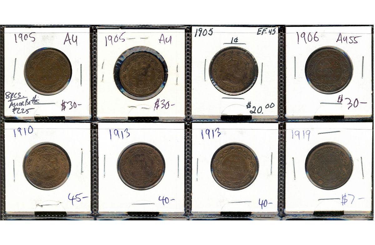 1905(3) 1¢, 1906, 1910, 1913(2) & 1919. Lot of 8 pcs AU or better.