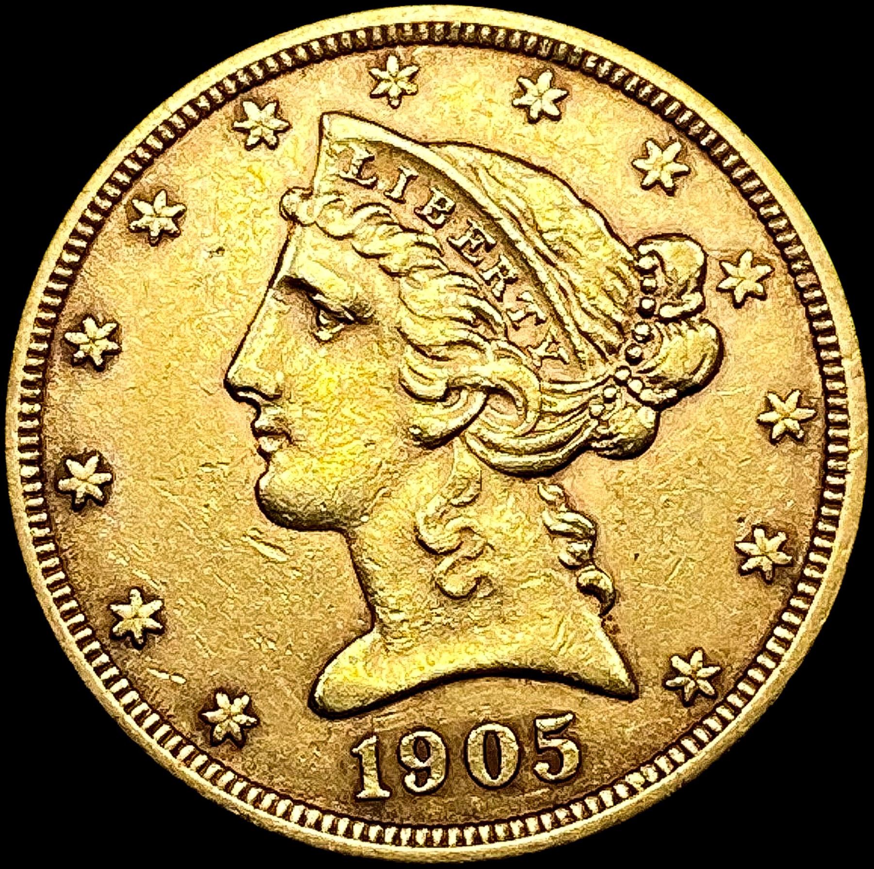 1905 $5 Gold Half Eagle CLOSELY UNCIRCULATED