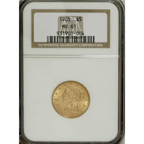 1905 $5 MS61 NGC. NGC Census: (364/1266). PCGS Pop