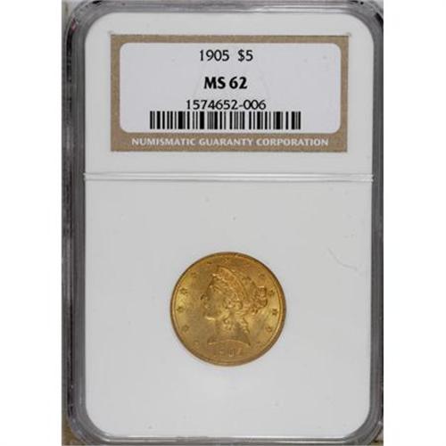 1905 $5 MS62 NGC. NGC Census: (688/617). PCGS Popu