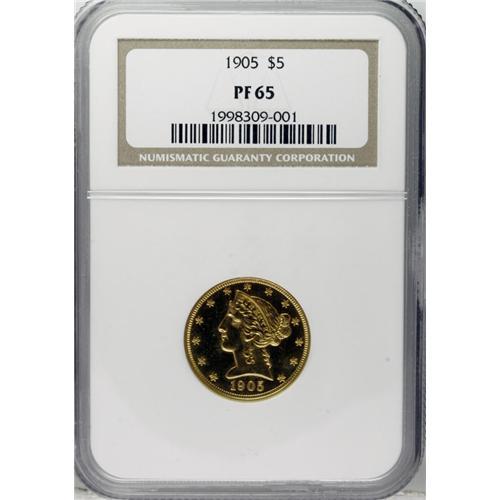 1905 $5 PR65 NGC. In the world of proof Liberty gold,