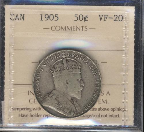 1905 50¢. Another key date problem free Edwardian half in ICCS VF20