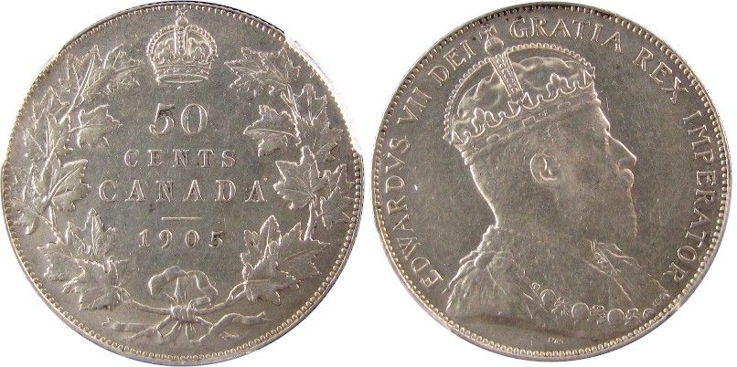 1905 50¢ PCGS AU50. Full white issue with good lustre. Rare date.