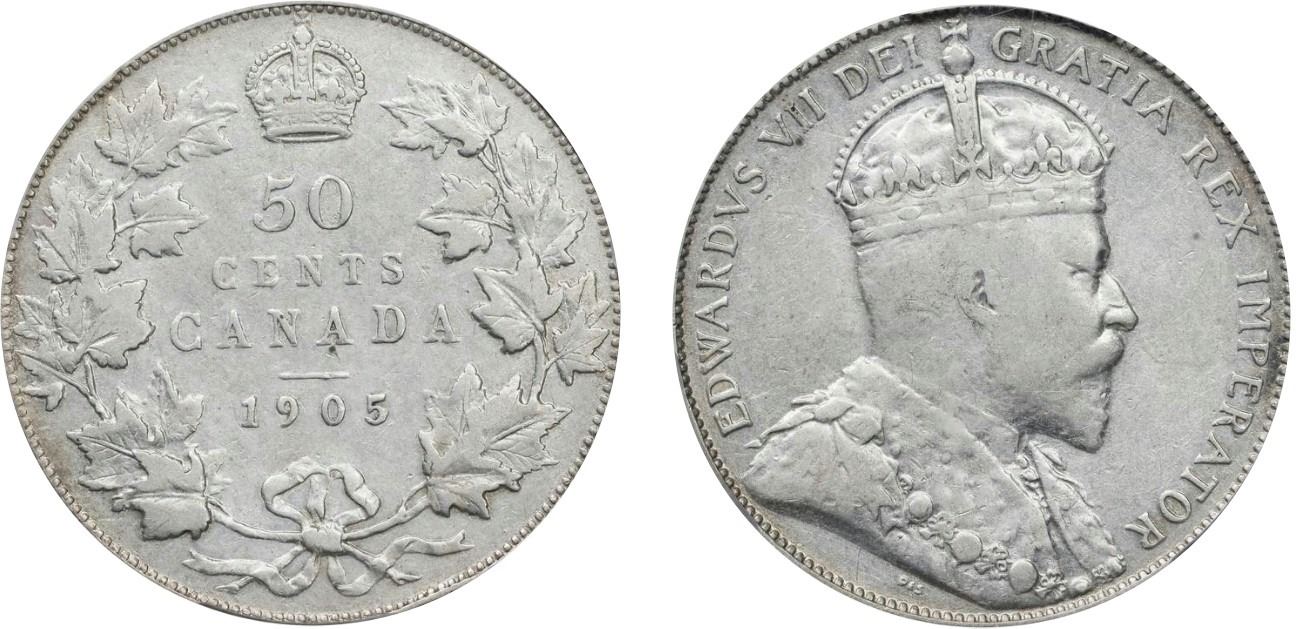 1905 50¢ PCGS Choice Very Fine-35 A nice and pleasing example. Very scarce key date.