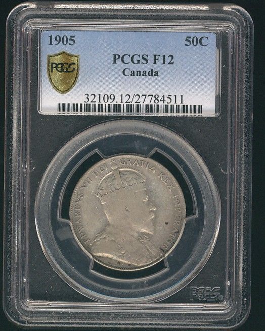 1905 50¢ PCGS F12. Key date.