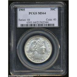 <table><tr><td><TABLE cellSpacing=0 cellPadding=0 width="100%" bgColor=#000000 border=0><TBODY> <TR><TD width="100%"><TABLE cellSpacing=1 cellPadding=3 width="100%" border=0><TBODY><TR><TD width="100%" bgColor=#79735c><FONT face=arial color=#ffffff size=3><B>Description</B> </FONT></TD></TR><TR><TD width="100%" bgColor=#ffffff><FONT face=arial size=2><B>1905 50C MS64 PCGS.</B></I> Most Barber half dollar issues are relatively obtainable in low grades, and scarce-to-rare in the finer Mint State grades. Few dates, however, boast as low an original mintage as that of the 1905. Only 662,000 pieces were produced, and the near-Gem offered here is among the finest certified survivors. With shimmering satin luster and just a few small abrasions on the obverse, the coin would seem to be knocking on the door of an even higher grade. Boldly struck, with minor softness on the eagle's wings and right (facing) leg. Population: 22 in 64, 13 finer (9/03).<BR><I>From the Andy Geosits Collection of Barber Halves.</B></I> </FONT></TD></TR></TBODY></TABLE></TD></TR></TBODY></TABLE><BR><A name=PricesRealized></A><TABLE cellSpacing=0 cellPadding=0 width="100%" bgColor=#000000 border=0><TBODY><TR><TD width="100%"><TABLE cellSpacing=1 cellPadding=3 width="100%" border=0><TBODY><TR><TD width="100%" bgColor=#79735c><A name=PR><FONT face=arial color=#ffffff size=3><B>Previous Prices from Heritage Auctions</B> </FONT></A></TD></TR><TR><TD bgColor=#f6f6ed><TABLE cellSpacing=0 cellPadding=0 width="100%" border=1><TBODY><TR><TD align=middle width="33%"><B>Date</B></TD><TD align=middle width="33%"><B>Service</B></TD><TD align=middle width="33%"><B>Price</B></TD></TR><TR bgColor=whitesmoke><TD width="33%"><B>05/16/2000</B></TD><TD width="33%">PCGS</TD><TD width="33%">$1,750.00</TD></TR><TR bgColor=whitesmoke><TD width="33%"><B>07/29/2003</B></TD><TD width="33%">PCGS</TD><TD width="33%">$3,565.00</TD></TR><TR bgColor=whitesmoke><TD width="33%"><B>07/29/2003</B></TD><TD width="33%">PCGS</TD><TD width="33%">$2,990.00</TD></TR><TR bgColor=whitesmoke><TD width="33%"><B>03/23/2003</B></TD><TD width="33%">PCGS</TD><TD width="33%">$3,565.00</TD></TR><TR bgColor=whitesmoke><TD width="33%"><B>08/07/2000</B></TD><TD width="33%">PCGS</TD><TD width="33%">$2,185.00</TD></TR><TR bgColor=whitesmoke><TD width="33%"><B>08/02/1997</B></TD><TD width="33%">PCGS</TD><TD width="33%">$3,220.00</TD></TR></TBODY></TABLE></TD></TR><TR><TD bgColor=#ffffff><FONT face=arial size=1 ?>PLEASE NOTE: All prices realized reflect the final hammer price PLUS the buyer's premium in auctions that charge a buyer's premium. Each item has a notation at the top of the listing indicating whether that lot included a buyer's premium. Example: A item that sells with a final hammer price of $100 and a 20% buyer's premium will display with a price realized of $120. All information listed is intended to be as accurate as possible, but errors are possible. Please use this guide carefully and inform us of any inaccuracies. </FONT></TD></TR></TBODY></TABLE></TD></TR></TBODY></TABLE><BR><TABLE cellSpacing=0 cellPadding=0 width="100%" bgColor=#000000 border=0><TBODY><TR><TD width="100%"><TABLE cellSpacing=1 cellPadding=3 width="100%" border=0><TBODY><TR><TD width="100%" bgColor=#79735c colSpan=6><FONT face=arial color=#ffffff size=3><B>Price Guide*</B> </FONT></TD></TR><TR bgColor=#f6f6ed><TD align=middle><B>Grade</B> </TD><TD align=middle><B>Coin World<BR>(Trends)</B> </TD><TD align=middle><B>Numismedia<BR>Retail</B> </TD><TD align=middle><B>Numismedia<BR>Wholesale</B> </TD><TD align=middle><B>Coin<BR>Universe</B> </TD><TD align=middle><B>Heritage<BR>Value Index</B> </TD></TR><TR bgColor=#ffffff><TD align=middle>63</TD><TD align=right>$1,200.00</TD><TD align=right>---</TD><TD align=right>$850.00</TD><TD align=right>$1,375.00</TD><TD align=right>$901.56</TD></TR><TR style="FONT-WEIGHT: bold" bgColor=#cccfdd><TD align=middle>64</TD><TD align=right>$1,800.00</TD><TD align=right>---</TD><TD align=right>$2,185.00</TD><TD align=right>$3,000.00</TD><TD align=right>$1,860.00</TD></TR><TR bgColor=#ffffff><TD align=middle>65</TD><TD align=right>$3,750.00</TD><TD align=right>---</TD><TD align=right>$4,200.00</TD><TD align=right>$7,000.00</TD><TD align=right>$4,368.33</TD></TR><TR bgColor=#ffffff><TD colSpan=6><FONT size=1>*All information listed is intended to be as accurate as possible, but errors are possible. No item may be returned or refused based on this information which is provided as a service to our customers. You should contact each pricing source directly to determine the accuracy of this information. </FONT></TD></TR></TBODY></TABLE></TD></TR></TBODY></TABLE><BR><TABLE cellSpacing=0 cellPadding=0 width="100%" bgColor=#000000 border=0><TBODY><TR><TD width="100%"><TABLE cellSpacing=1 cellPadding=3 width="100%" border=0><TBODY><TR><TD width="100%" bgColor=#79735c><FONT face=arial color=#ffffff size=3><B>Population Guide</B> </FONT></TD></TR><TR bgColor=#ffffff><TD align=middle><!-- Begin Output of Population Grid--><TABLE cellSpacing=0 cellPadding=0 width="100%" border=0><TBODY><TR><TD vAlign=center><TABLE cellSpacing=0 width="100%" border=1 cellsadding="3"><TBODY><TR><TD vAlign=center><TABLE cellSpacing=0 cellPadding=3 width="100%" border=1><TBODY><TR><TD vAlign=center align=middle bgColor=#f0f1e8 colSpan=2 <CENTER><FONT face=Arial size=2><B>PCGS Pop </B></FONT><CENTER></CENTER></TD><TD vAlign=center align=middle bgColor=#f0f1e8 colSpan=2><CENTER><FONT face=Arial size=2><B>NGC Pop</B></CENTER></FONT></TD></TR><TR><TD vAlign=center><FONT face=Arial size=2>(64)</FONT> </TD><TD vAlign=center align=right><FONT face=Arial size=2>22</FONT> </TD><TD vAlign=center><FONT face=Arial size=2>(64)</FONT> </TD><TD vAlign=center align=right><FONT face=Arial size=2>11</FONT> </TD></TR><TR><TD vAlign=center><FONT face=Arial size=2>(>64)</FONT> </TD><TD vAlign=center align=right><FONT face=Arial size=2>13</FONT> </TD><TD vAlign=center><FONT face=Arial size=2>(>64)</FONT> </TD><TD vAlign=cent