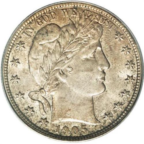<B>1905 50C MS64 PCGS.</B></I> The mottled obverse toning is amber-gray, with a few reddish tinges, while the reverse sports a coating of blue-gray and amber. The strike is soft on the eagle's right (facing) wing, and a couple of abrasions are noted on the neck of Liberty. PCGS has graded only 21 specimens at this level, with just 14 finer (3/08).<BR><BR><B>Coin Engraver:</B> Charles E. Barber<BR><BR><b>Shipping:</b> Coins & Currency (<a target="_blank" href="http://www.heritageauctions.com/common/shipping.php">view shipping information</a>)