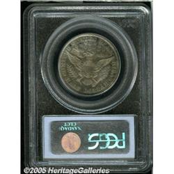 <B>1905 50C PR62 PCGS.</B></I> Well struck and nearly mark-free, with a coating of tan, and dappled specks of purple-red and dark-green color, near the peripheries on each side of the coin.