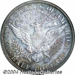 <table><tr><td><table><tr><td>1905 50C PR66 PCGS. Rather dramatic, mottled shades of coppery-orange and steel-blue are intermixed over both sides of this glittering Gem specimen. Population: 23 in 66, 11 finer (3/04). <BR><BR><B>Important notice:</B> Heritage usually auctions material at the rate of 200-250 lots per hour. On some occasions eBay Live bid software or the Internet may not be able to keep up with the pace of the auction. We recommend placing a realistic absentee bid now as insurance to avoid disappointment. Occasionally the auctioneer may eliminate or reject an eBay Live bid, and the auctioneer may also reopen a lot after the close of the eBay live bidding (usually because we missed an audience bid), and may reject your bid even if it shows you as the winning bidder. By bidding via eBay Live, you agree that Heritage may award the lot to another bidder at its sole discretion under the circumstances described above or any other reasonable circumstances. Since eBay bids are not shown to us until we open the lot on the floor, we treat those bids just like floor bids. In most cases the floor responds before the eBay bid is presented to us, due to Internet lag time, so for consistency we have made it a policy that floor bids are always considered first over tie eBay live bids. Also please note that all Heritage lots purchased through eBay Live carry a 20% Buyer's Premium. Please make sure you read the Terms and Conditions before you bid. <BR><BR><B>IMPORTANT ANNOUNCEMENT ABOUT RESERVES:</B> Heritage now divulges all reserves on its web site 7 days before every auction. If you want to know whether the reserve on this lot has been met, and if not, what the reserve amount is, please visit this lot page on the HeritageCoin.com web site, or email: bid@HeritageGalleries.com </span></font></td></tr></table></td></tr></table>