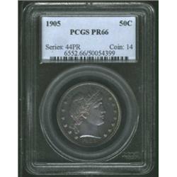 <table><tr><td><TABLE cellSpacing=0 cellPadding=0 width="100%" bgColor=#000000 border=0><TBODY> <TR><TD width="100%"><TABLE cellSpacing=1 cellPadding=3 width="100%" border=0><TBODY><TR><TD width="100%" bgColor=#79735c><FONT face=arial color=#ffffff size=3><B>Description</B> </FONT></TD></TR><TR><TD width="100%" bgColor=#ffffff><FONT face=arial size=2><B>1905 50C PR66 PCGS.</B></I> Since the Philadelphia Mint produced a relatively limited number of business strike Half Dollars in 1905, proofs are always in demand among collectors who require a representative of this early 20th century issue. Of course, the present specimen is an important coin in its own right, inasmuch as the surfaces have been uncommonly well preserved. Rich rose-lavender and cobalt-blue patina blankets smooth, sharply impressed features. The uniformly reflective finish is evident under the patina. </FONT></TD></TR></TBODY></TABLE></TD></TR></TBODY></TABLE><BR><A name=PricesRealized></A><TABLE cellSpacing=0 cellPadding=0 width="100%" bgColor=#000000 border=0><TBODY><TR><TD width="100%"><TABLE cellSpacing=1 cellPadding=3 width="100%" border=0><TBODY><TR><TD width="100%" bgColor=#79735c><A name=PR><FONT face=arial color=#ffffff size=3><B>Previous Prices from Heritage Auctions</B> </FONT></A></TD></TR><TR><TD bgColor=#f6f6ed><TABLE cellSpacing=0 cellPadding=0 width="100%" border=1><TBODY><TR><TD align=middle width="33%"><B>Date</B></TD><TD align=middle width="33%"><B>Service</B></TD><TD align=middle width="33%"><B>Price</B></TD></TR><TR bgColor=whitesmoke><TD width="33%"><B>09/28/2002</B></TD><TD width="33%">PCGS</TD><TD width="33%">$3,335.00</TD></TR><TR bgColor=whitesmoke><TD width="33%"><B>05/27/2001</B></TD><TD width="33%">NGC</TD><TD width="33%">$2,760.00</TD></TR><TR bgColor=whitesmoke><TD width="33%"><B>08/01/1999</B></TD><TD width="33%">PCGS</TD><TD width="33%">$6,900.00</TD></TR></TBODY></TABLE></TD></TR><TR><TD bgColor=#ffffff><FONT face=arial size=1 ?>PLEASE NOTE: All prices realized reflect the final hammer price PLUS the buyer's premium in auctions that charge a buyer's premium. Each item has a notation at the top of the listing indicating whether that lot included a buyer's premium. Example: A item that sells with a final hammer price of $100 and a 20% buyer's premium will display with a price realized of $120. All information listed is intended to be as accurate as possible, but errors are possible. Please use this guide carefully and inform us of any inaccuracies. </FONT></TD></TR></TBODY></TABLE></TD></TR></TBODY></TABLE><BR><TABLE cellSpacing=0 cellPadding=0 width="100%" bgColor=#000000 border=0><TBODY><TR><TD width="100%"><TABLE cellSpacing=1 cellPadding=3 width="100%" border=0><TBODY><TR><TD width="100%" bgColor=#79735c colSpan=6><FONT face=arial color=#ffffff size=3><B>Price Guide*</B> </FONT></TD></TR><TR bgColor=#f6f6ed><TD align=middle><B>Grade</B> </TD><TD align=middle><B>Coin World<BR>(Trends)</B> </TD><TD align=middle><B>Numismedia<BR>Retail</B> </TD><TD align=middle><B>Numismedia<BR>Wholesale</B> </TD><TD align=middle><B>Coin<BR>Universe</B> </TD><TD align=middle><B>Heritage<BR>Value Index</B> </TD></TR><TR bgColor=#ffffff><TD align=middle>65</TD><TD align=right>---</TD><TD align=right>---</TD><TD align=right>$2,625.00</TD><TD align=right>$4,250.00</TD><TD align=right>$2,545.00</TD></TR><TR style="FONT-WEIGHT: bold" bgColor=#cccfdd><TD align=middle>66</TD><TD align=right>---</TD><TD align=right>---</TD><TD align=right>$3,375.00</TD><TD align=right>$6,000.00</TD><TD align=right>$3,767.50</TD></TR><TR bgColor=#ffffff><TD align=middle>67</TD><TD align=right>---</TD><TD align=right>---</TD><TD align=right>$5,750.00</TD><TD align=right>$8,600.00</TD><TD align=right>$6,172.50</TD></TR><TR bgColor=#ffffff><TD colSpan=6><FONT size=1>*All information listed is intended to be as accurate as possible, but errors are possible. No item may be returned or refused based on this information which is provided as a service to our customers. You should contact each pricing source directly to determine the accuracy of this information. </FONT></TD></TR></TBODY></TABLE></TD></TR></TBODY></TABLE><BR><TABLE cellSpacing=0 cellPadding=0 width="100%" bgColor=#000000 border=0><TBODY><TR><TD width="100%"><TABLE cellSpacing=1 cellPadding=3 width="100%" border=0><TBODY><TR><TD width="100%" bgColor=#79735c><FONT face=arial color=#ffffff size=3><B>Population Guide</B> </FONT></TD></TR><TR bgColor=#ffffff><TD align=middle><!-- Begin Output of Population Grid--><TABLE cellSpacing=0 cellPadding=0 width="100%" border=0><TBODY><TR><TD vAlign=center><TABLE cellSpacing=0 width="100%" border=1 cellsadding="3"><TBODY><TR><TD vAlign=center><TABLE cellSpacing=0 cellPadding=3 width="100%" border=1><TBODY><TR><TD vAlign=center align=middle bgColor=#f0f1e8 colSpan=2 <CENTER><FONT face=Arial size=2><B>PCGS Pop </B></FONT><CENTER></CENTER></TD><TD vAlign=center align=middle bgColor=#f0f1e8 colSpan=2><CENTER><FONT face=Arial size=2><B>NGC Pop</B></CENTER></FONT></TD></TR><TR><TD vAlign=center><FONT face=Arial size=2>(66)</FONT> </TD><TD vAlign=center align=right><FONT face=Arial size=2>27</FONT> </TD><TD vAlign=center><FONT face=Arial size=2>(66)</FONT> </TD><TD vAlign=center align=right><FONT face=Arial size=2>19</FONT> </TD></TR><TR><TD vAlign=center><FONT face=Arial size=2>(>66)</FONT> </TD><TD vAlign=center align=right><FONT face=Arial size=2>11</FONT> </TD><TD vAlign=center><FONT face=Arial size=2>(>66)</FONT> </TD><TD vAlign=center align=right><FONT face=Arial size=2>8</FONT> </TD></TR></TBODY></TABLE></TD></TR></TBODY></TABLE></TD></TR></TBODY></TABLE><!-- End Output of Population Grid--></TD></TR></TBODY></TABLE></TD></TR></TBODY></TABLE><BR><TABLE cellSpacing=0 cellPadding=0 width="100%" bgColor=#000000 border=0><TBODY><TR> Important notice: Heritage usually auctions material at the rate of 200-250 lots per hour. On some occasions eBay Live bid software or the Internet may not be able to keep up with the pace of the auction. We recomm