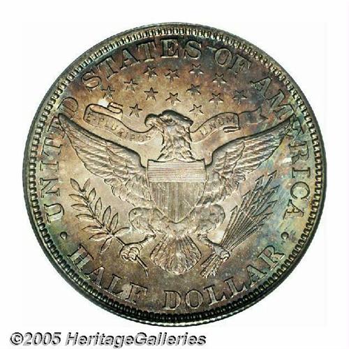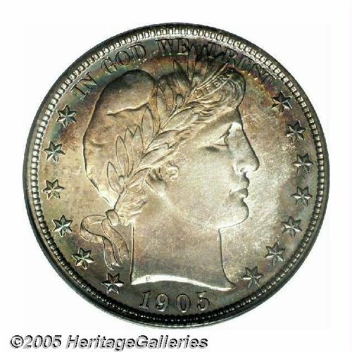 <B>1905<50C> PR67 PCGS.</B></I> Delightful toning on the obverse and reverse which shows traces of rainbow hues near the rims and bright orange-gold at the centers. The surfaces are attractive and show only a whisper of hairlines. A great coin for the type or date collector who demands Superb quality.<BR><I>From The Melrose Bay Collection.</B></I>