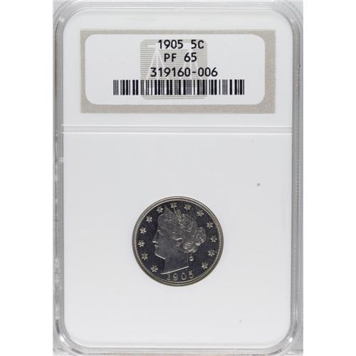 1905 5C PR65 NGC. The design of the Liberty nickel was
