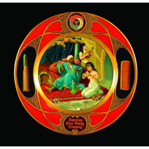 1905 American Every Ready Co. Tin Vienna Art Plate, small blemish at 6:00 otherwise near mint condition, 10 inch diameter.