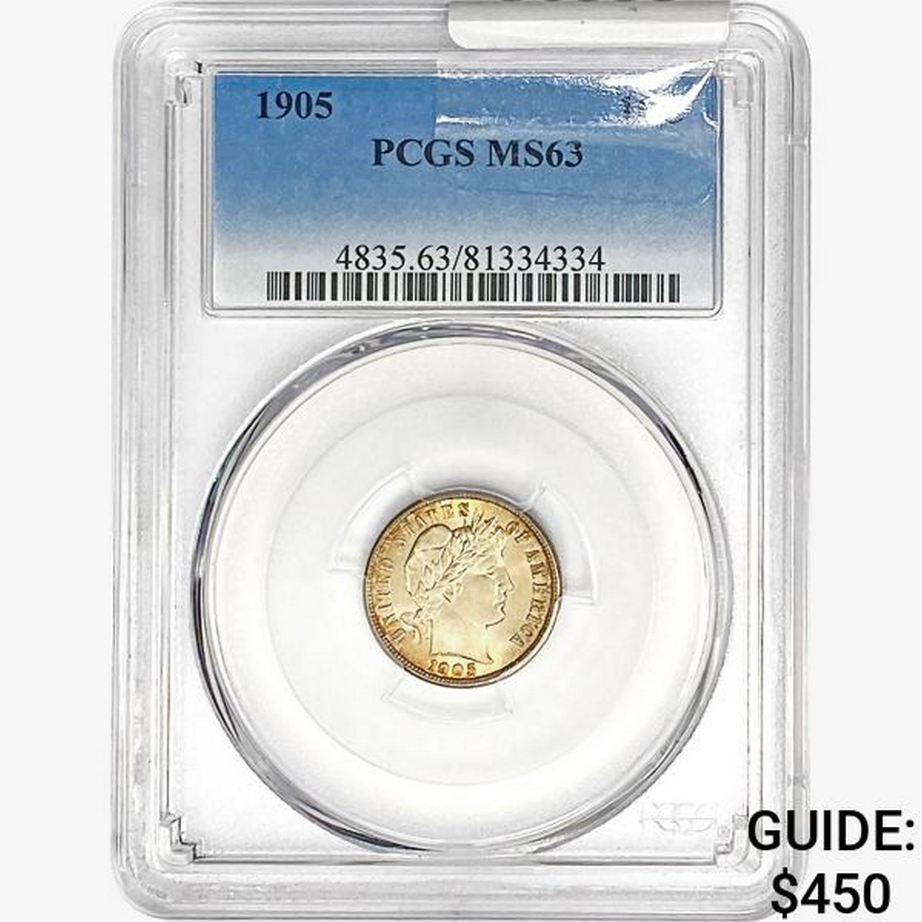 1905 Barber Dime PCGS MS63