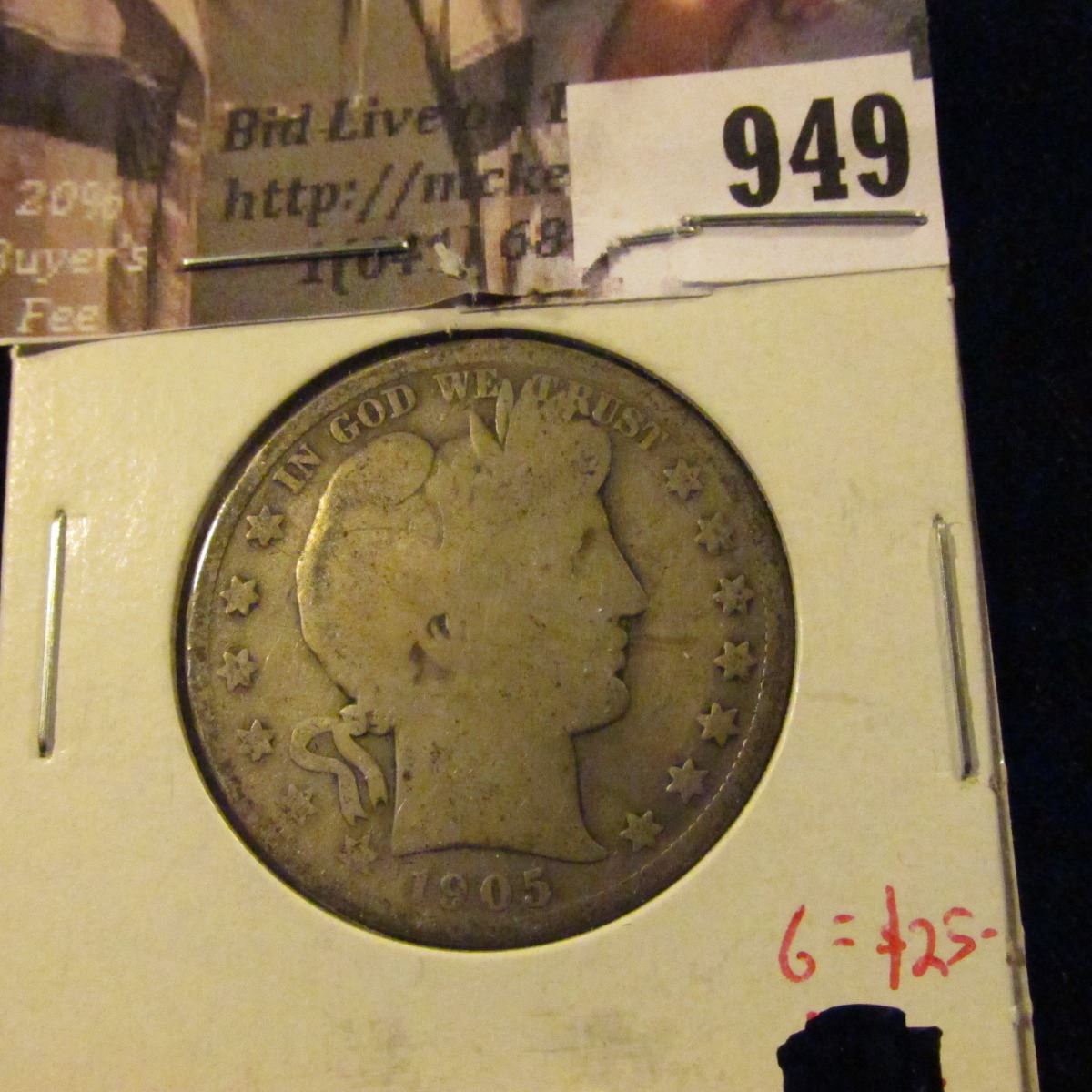 1905 Barber Half Dollar, G obverse, AG reverse, G value $25