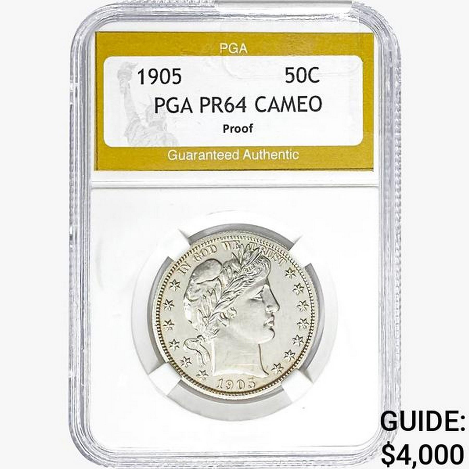 1905 Barber Half Dollar PGA PR64 PROOF, CAMEO