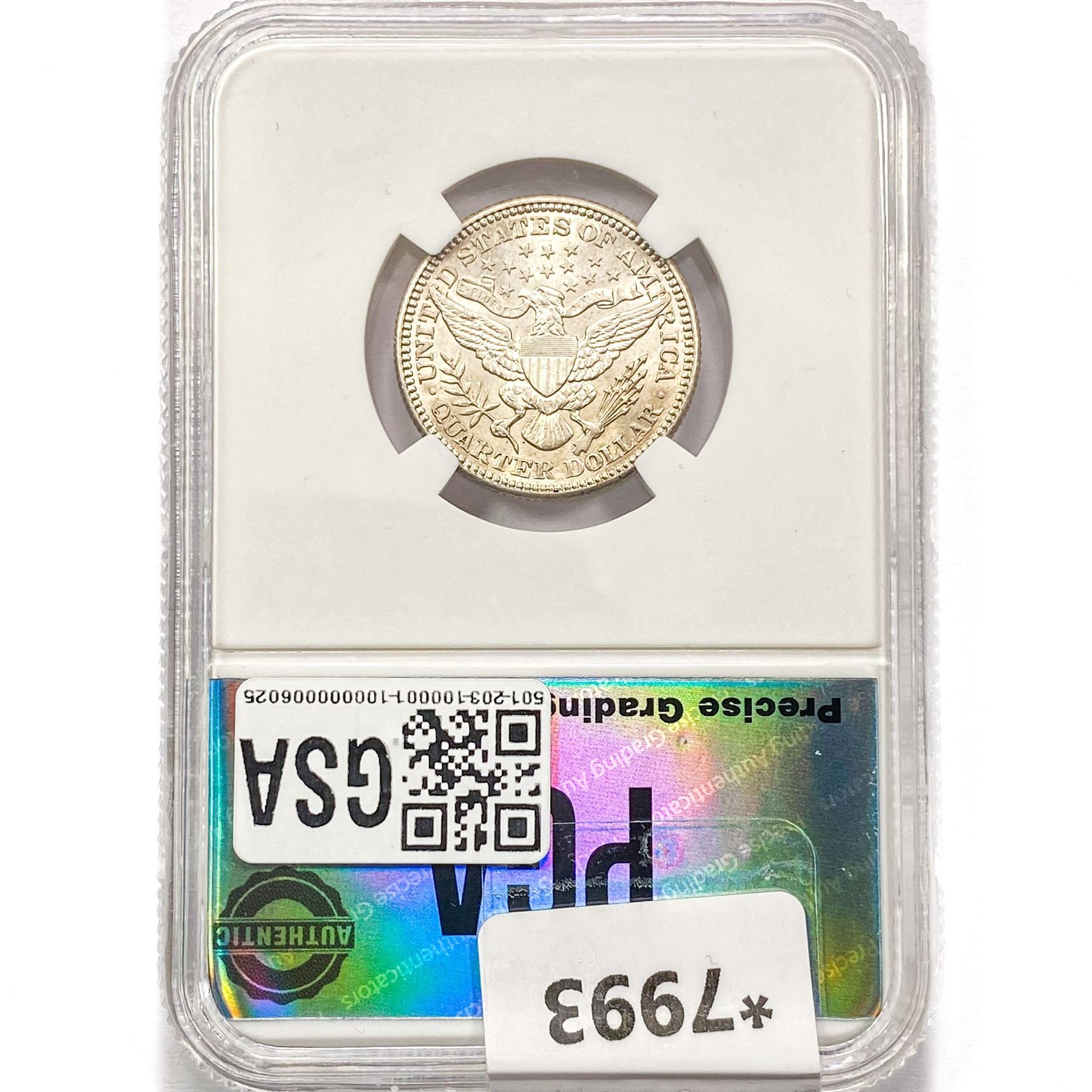 COINS AND CURRENCY LISTED IN GSA’S CATALOG AS GRADED AND ENCAPSULATED BY PCGS, NGC, ANACS, ICG, PCGS CURRENCY, PMG, PCGS BANKNOTE GRADING, CMC OR ANY OTHER THIRD-PARTY GRADING SERVICE ARE LIKEWISE SOLD “AS-IS” EXCEPT AS EXPRESSLY SET FORTH HEREIN. ALL THIRD-PARTY GRADING SERVICE GUARANTEES, INCLUDING AUTHENTICITY, ARE THE SOLE RESPONSIBILITY OF THE THIRD-PARTY GRADING SERVICE AND NOT WARRANTIES OR GUARANTEES OF GSA. BIDDERS SHOULD CONTACT THESE THIRD-PARTY GRADING SERVICES DIRECTLY WITH RESPECT TO ANY CLAIMS OR QUESTIONS THEY MAY HAVE CONCERNING THEIR GUARANTEES AND WARRANTIES. BIDDERS ACKNOWLEDGE AND AGREE THAT AUCTIONEER IS NOT BOUND BY OR LIABLE FOR ANY OPINION OR CERTIFICATION BY ANY THIRD-PARTY GRADING SERVICE. REMOVAL OF A PRODUCT FROM ITS PROTECTIVE CASING OR HOLDER OR ALTERATION OF ANY COIN HOLDER WAIVES ALL RIGHTS CONCERNING THE PRODUCT CONTAINED THEREIN.