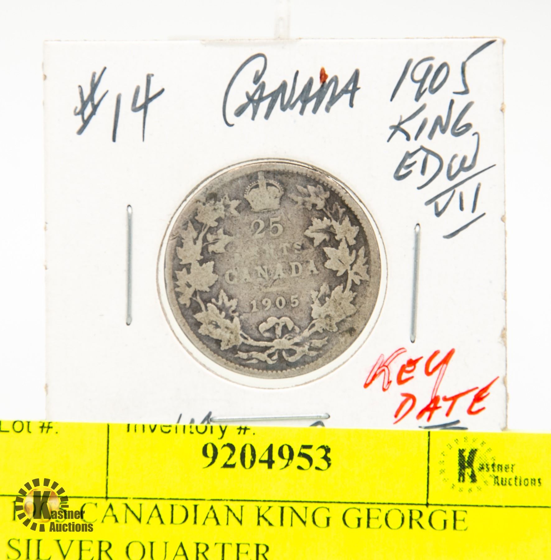 1905 CANADIAN KING GEORGE SILVER QUARTER