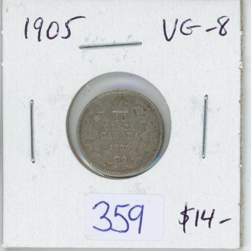 1905 Canadian Silver 10 Cents. VG-8.