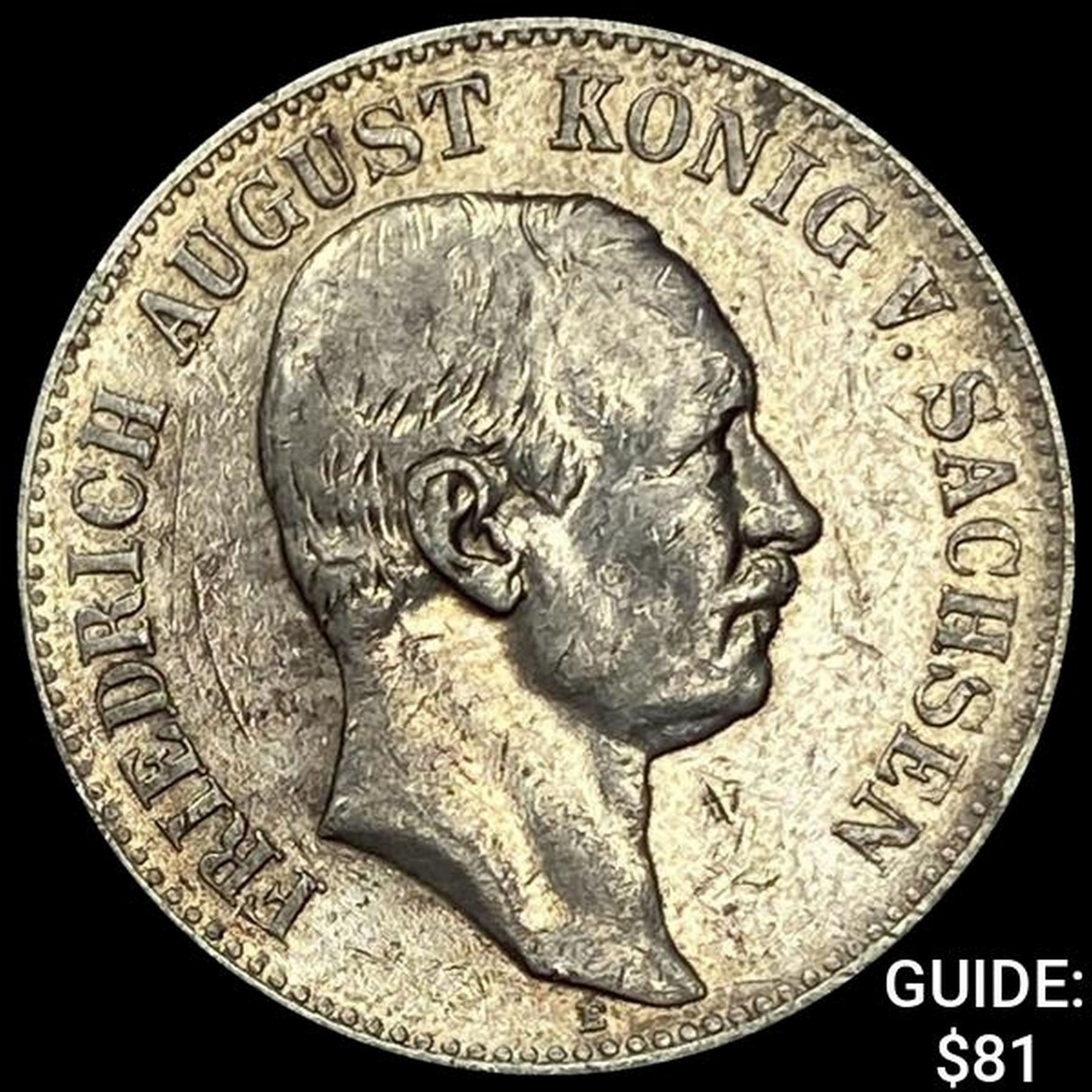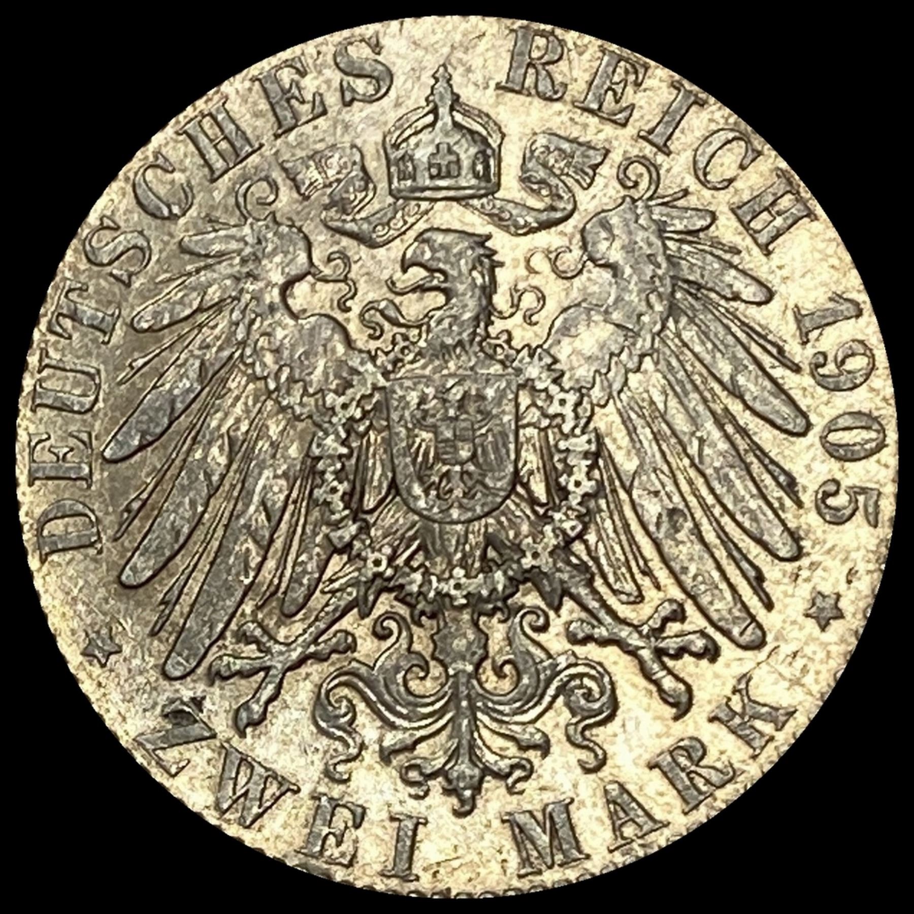 1905-E Sachsen Silver 2 Mark NEARLY UNCIRCULATED