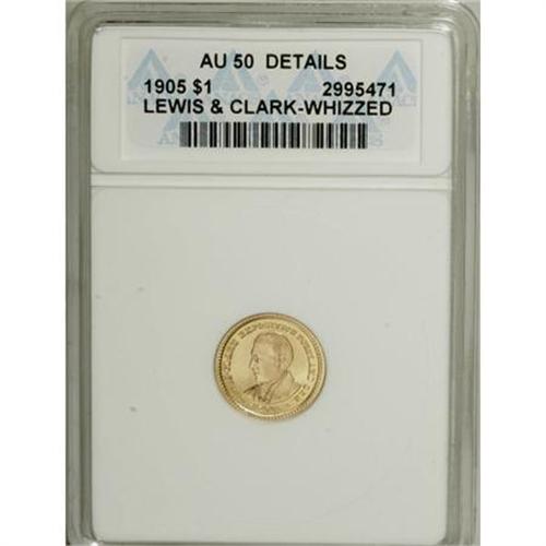<B>1905 G$1 Lewis and Clark--Whizzed--ANACS. AU50 Details.</B></I> NGC Census: (1/1034). PCGS Population (4/1916). Mintage: 10,000. Numismedia Wsl. Price for NGC/PCGS coin in AU50: $840. (#7448)<BR><BR><b>Shipping:</b> Coins & Currency (<a target="_blank" href="http://www.heritageauctions.com/common/shipping.php">view shipping information</a>)