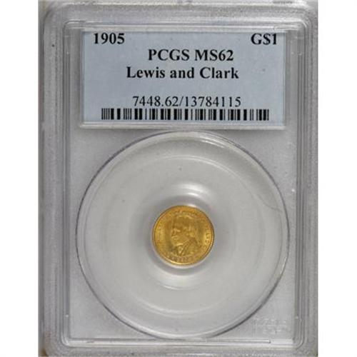 <B>1905 G$1 Lewis and Clark MS62 PCGS.</B></I> A luminous sun-gold representative of this popular "two-faced" commemorative issue, struck during the second year of production. Well-defined with a slightly hazy appearance and small, scattered abrasions that preclude a Select grade.<BR><BR><b>Shipping:</b> Coins & Currency (<a target="_blank" href="http://www.heritageauctions.com/common/shipping.php">view shipping information</a>)