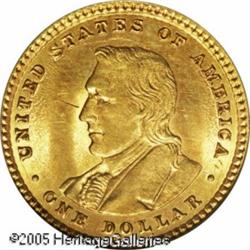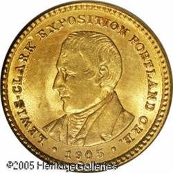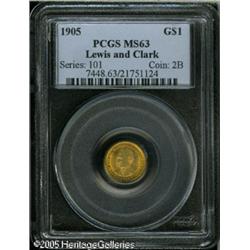 <B>1905 G$1 Lewis and Clark MS63 PCGS.</B></I> There is a short field mark left of the reverse portrait on this otherwise glowing golden color coin. An important key issue in an affordable grade. Lot:8644